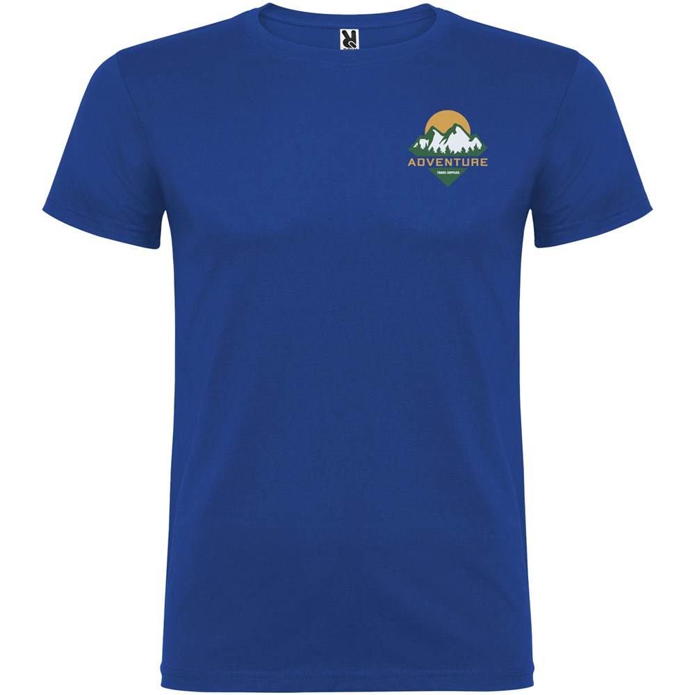 T-shirt à manches courtes avec col rond double épaisseur en élasthanne, confectionné en tissu tubulaire pour adultes. Coutures recouvertes renforcées au col. Étiquette détachable.Le mannequin mesure 190 cm et porte la taille L.