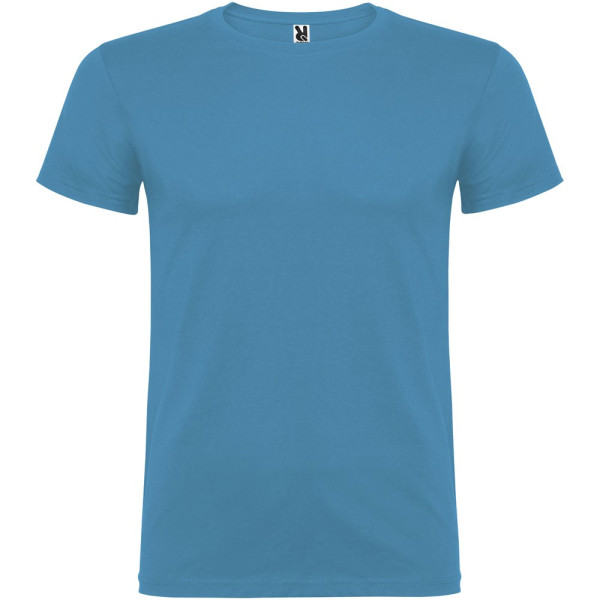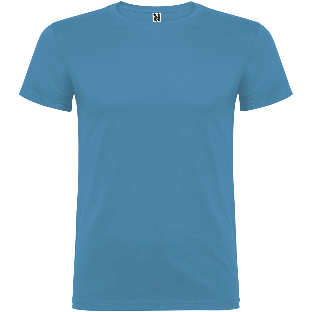 T-shirt à manches courtes avec col rond double épaisseur en élasthanne, confectionné en tissu tubulaire pour adultes. Coutures recouvertes renforcées au col. Étiquette détachable.Le mannequin mesure 190 cm et porte la taille L.