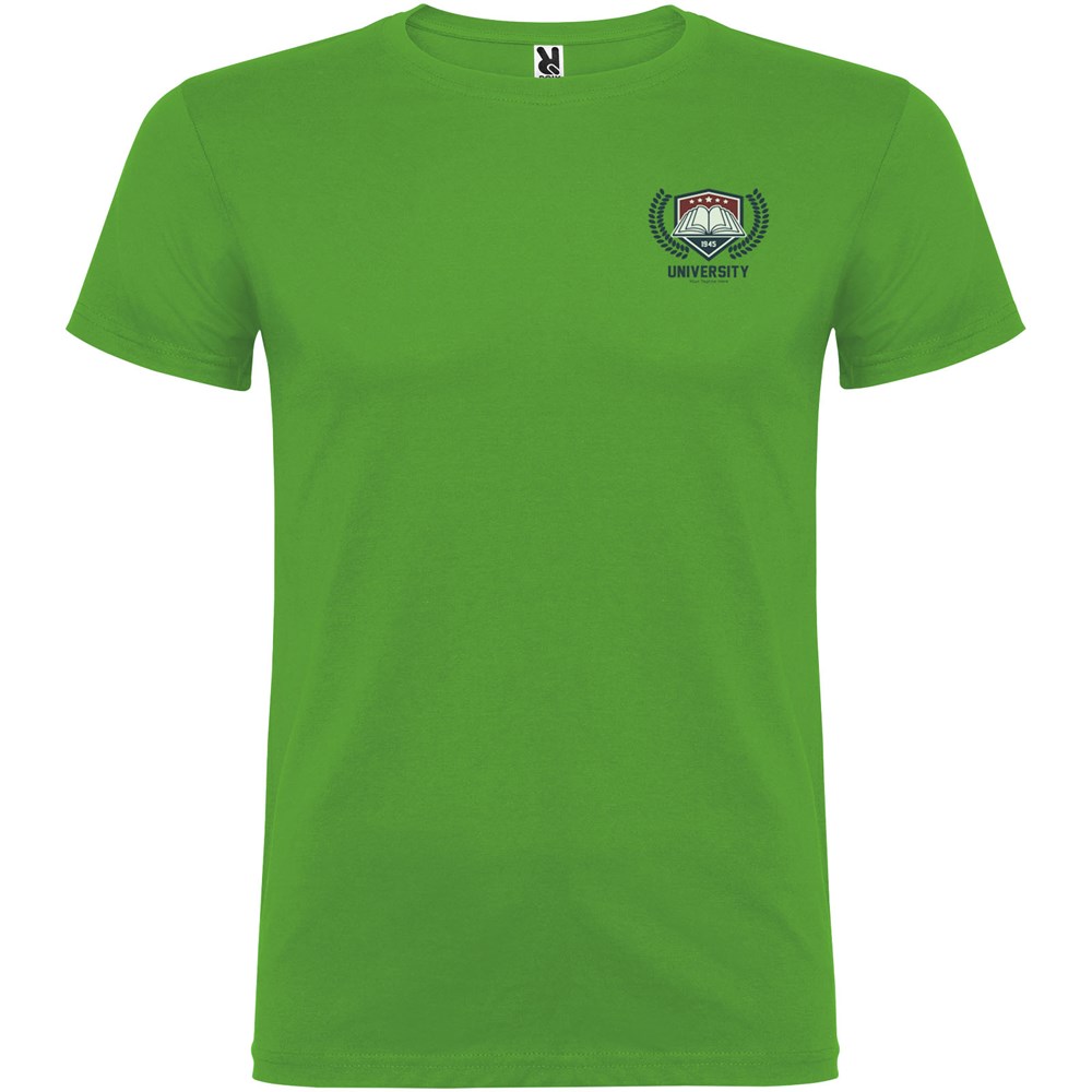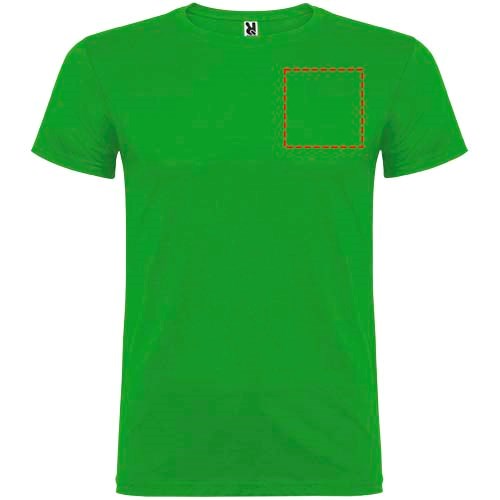 T-shirt à manches courtes avec col rond double épaisseur en élasthanne, confectionné en tissu tubulaire pour adultes. Coutures recouvertes renforcées au col. Étiquette détachable.Le mannequin mesure 190 cm et porte la taille L.