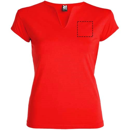 T-shirt ajusté avec col rond et ouverture en V sur le devant. Demi-manches et coutures latérales bordées. Tissu de haute qualité pour un toucher doux et agréable. Étiquette détachable. Le mannequin mesure 179 cm et porte la taille S.