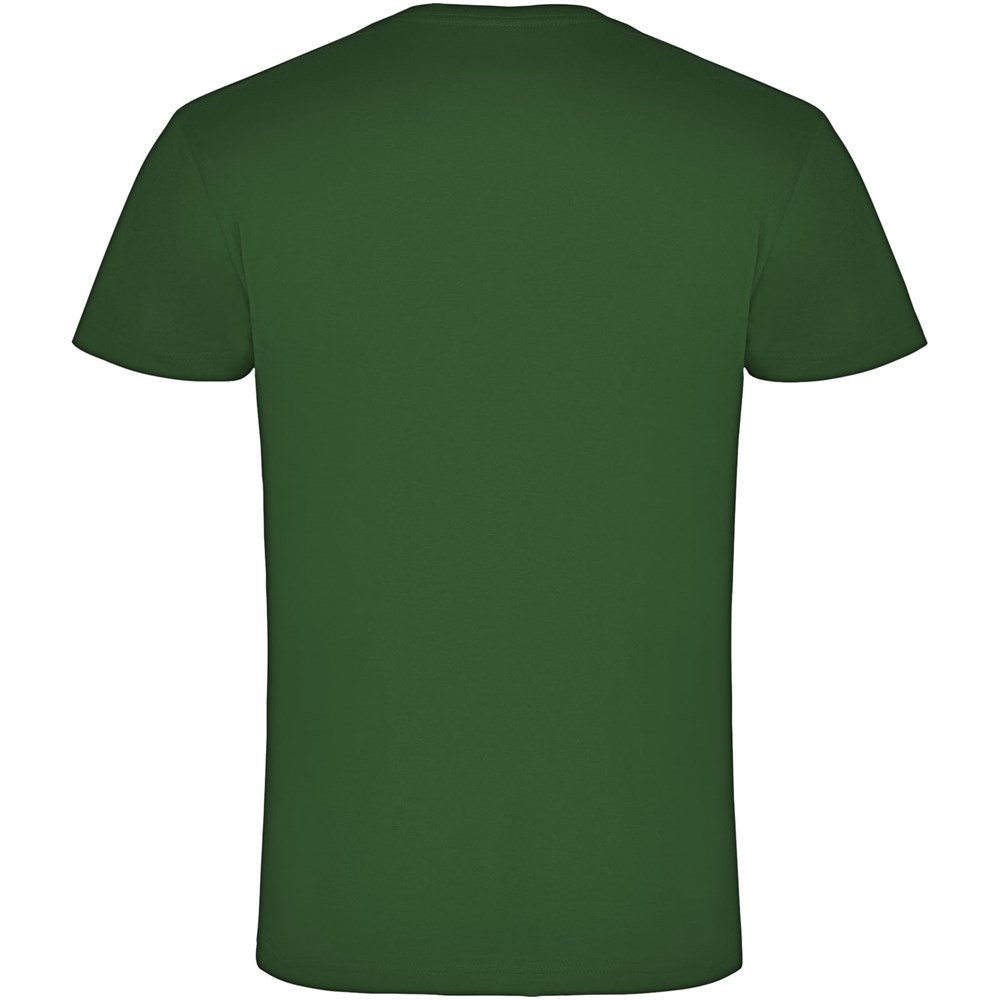 T-shirt tubulaire à manches courtes avec col en V 2 épaisseurs. Coutures recouvertes renforcées au col et aux épaules. Étiquette détachable. Le mannequin mesure 190 cm et porte la taille L.