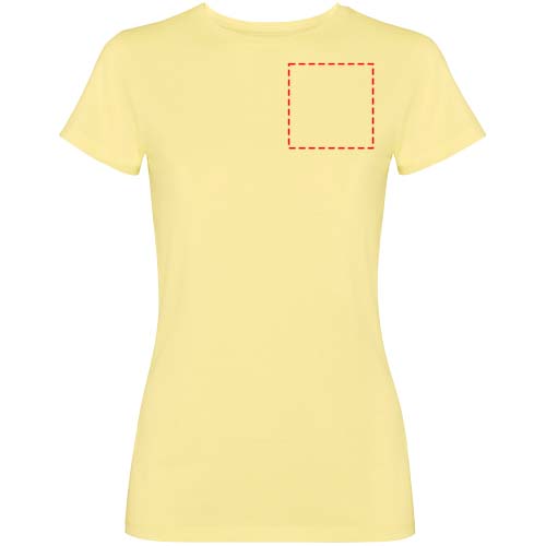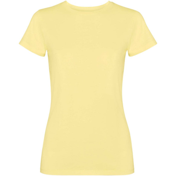 T-shirt à manches courtes pour femmes. Finition délavée. Col ras du cou et coutures latérales en côtes 1x1. Point de recouvrement ton sur ton à l'encolure.