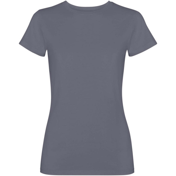 T-shirt à manches courtes pour femmes. Finition délavée. Col ras du cou et coutures latérales en côtes 1x1. Point de recouvrement ton sur ton à l'encolure.