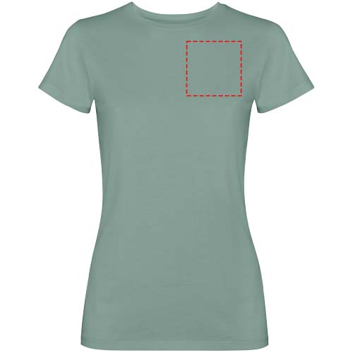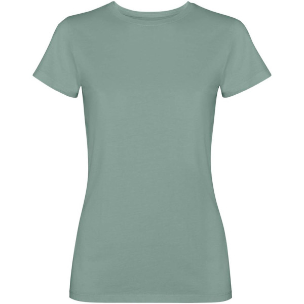 T-shirt à manches courtes pour femmes. Finition délavée. Col ras du cou et coutures latérales en côtes 1x1. Point de recouvrement ton sur ton à l'encolure.