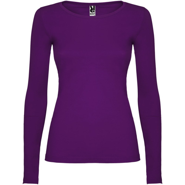 T-shirt semi-ajusté à manches longues avec col finement bordé. Pas de manchettes. Coutures latérales. Étiquette détachable.