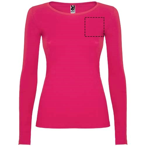 T-shirt semi-ajusté à manches longues avec col finement bordé. Pas de manchettes. Coutures latérales. Étiquette détachable.