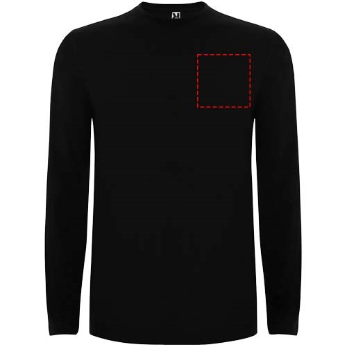 T-shirt à manches longues en tissu tubulaire et col rond 4 épaisseurs. Coutures recouvertes renforcées au col et aux épaules. Pas de manchettes. Étiquette détachable. Conception tubulaire en tailles adultes et coutures latérales en tailles enfants. Le mannequin mesure 185 cm et porte la taille L.