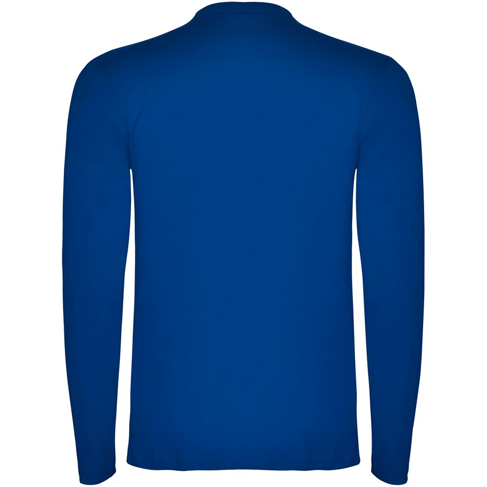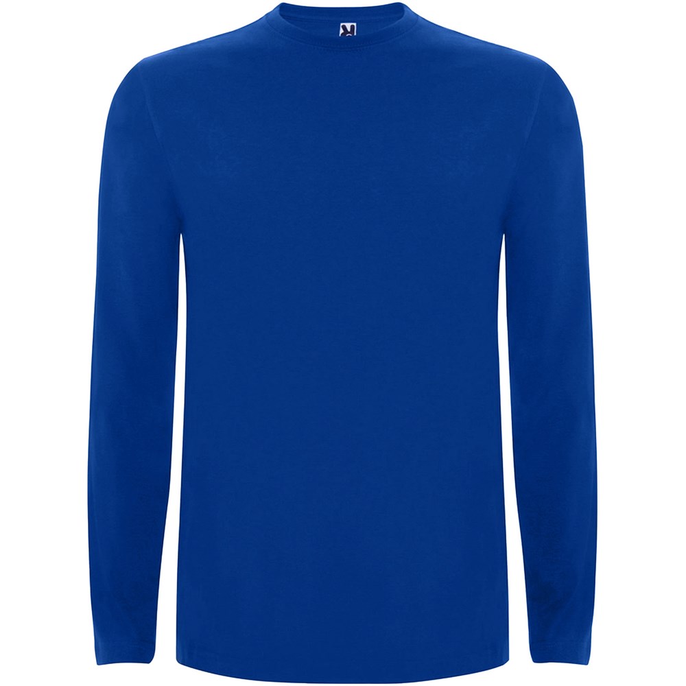 T-shirt à manches longues en tissu tubulaire et col rond 4 épaisseurs. Coutures recouvertes renforcées au col et aux épaules. Pas de manchettes. Étiquette détachable. Conception tubulaire en tailles adultes et coutures latérales en tailles enfants. Le mannequin mesure 185 cm et porte la taille L.