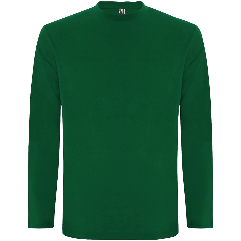 T-shirt à manches longues en tissu tubulaire et col rond 4 épaisseurs. Coutures recouvertes renforcées au col et aux épaules. Pas de manchettes. Étiquette détachable. Conception tubulaire en tailles adultes et coutures latérales en tailles enfants. Le mannequin mesure 185 cm et porte la taille L.