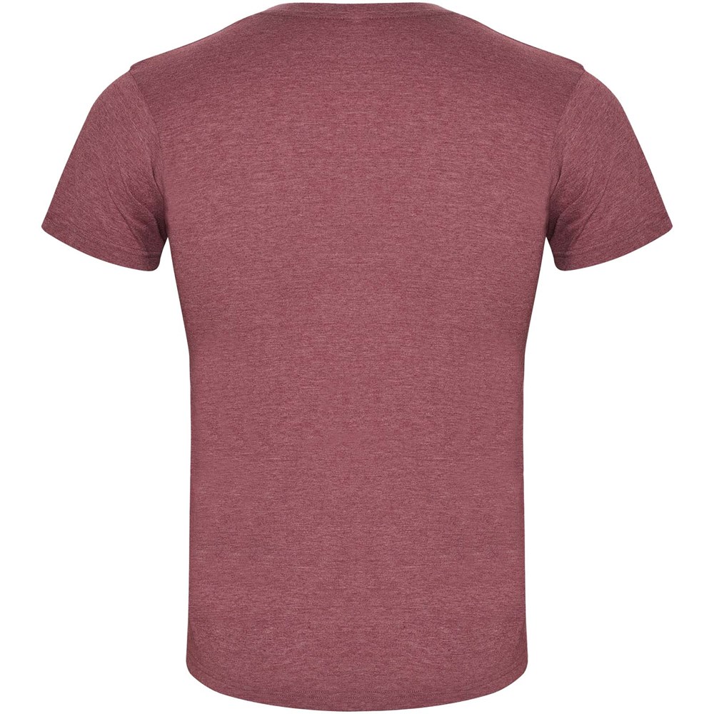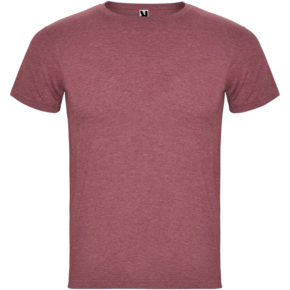T-shirt à manches courtes avec effet chiné. Col rond en côtes 1x1 avec bande de propreté renforcées à l'intérieur. Tissu tubulaire. Étiquette détachable.