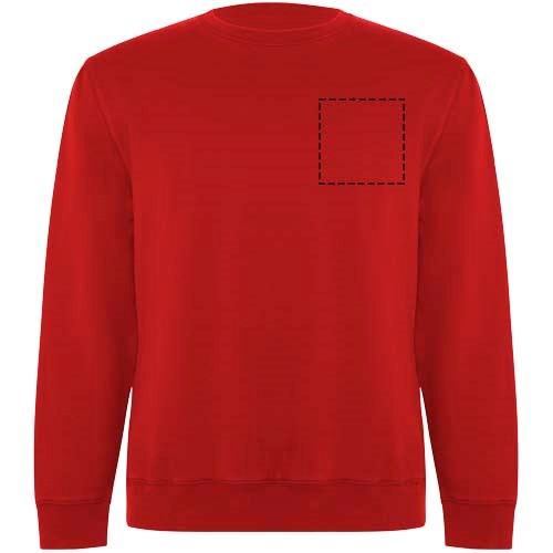Sweat unisexe en coton peigné biologique et polyester recyclé. Col, poignets et ourlet en tissu côtelé 2x1. Coutures surjetées décoratives aux épaules, aux emmanchures, au col, aux poignets et à l'ourlet. Couture demi-lune à l'intérieur du col arrière. Étiquette détachable. Emballage individuel recyclé. Le mannequin mesure 190 cm et porte la taille L.