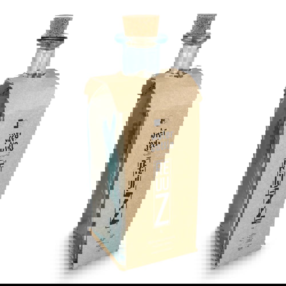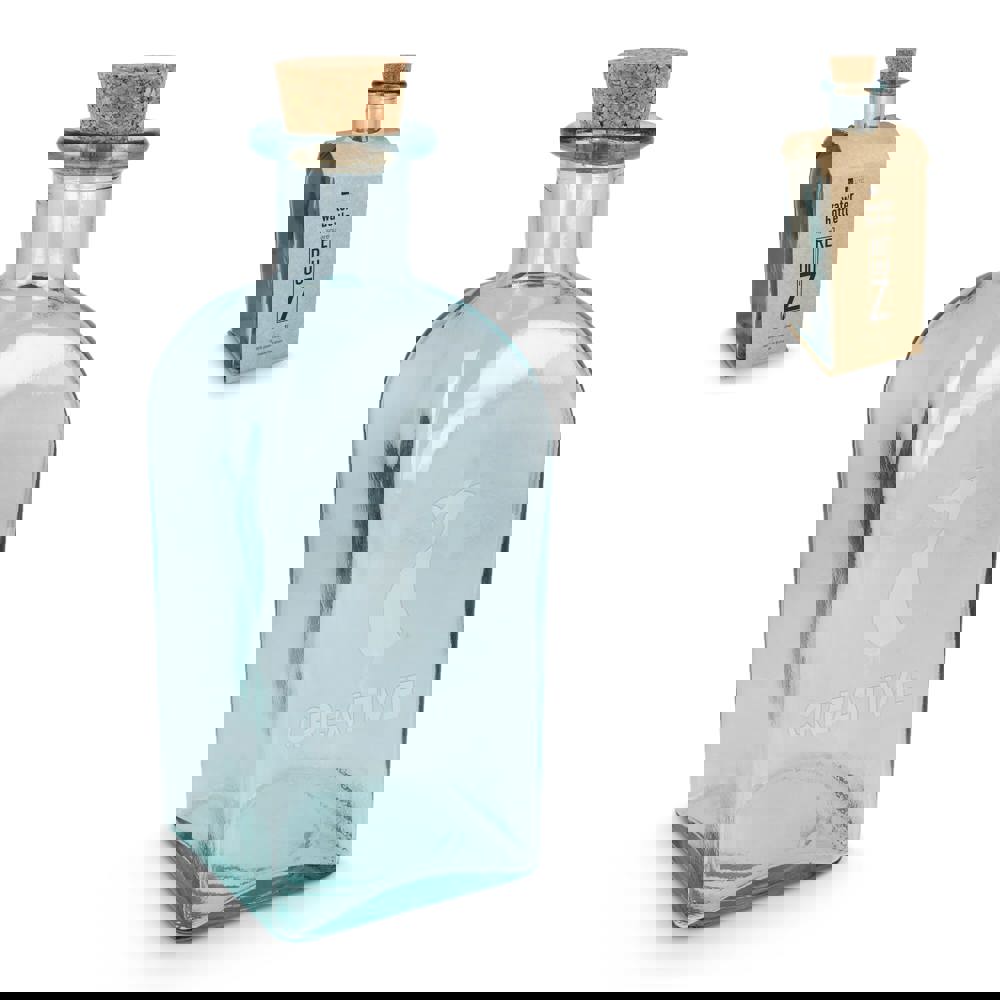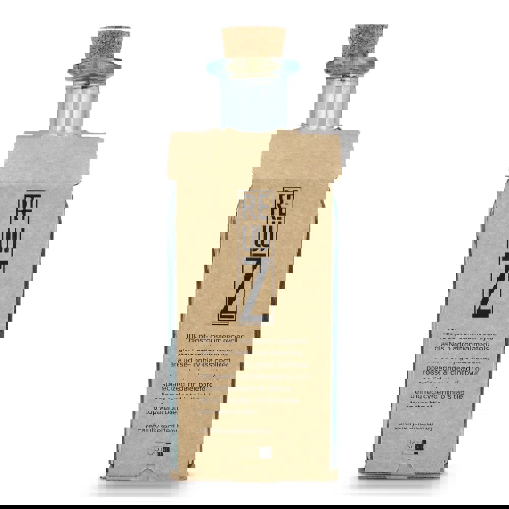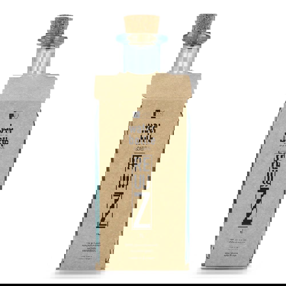 Bouteille en verre recyclé InSideOut Square ReuuZ avec bouchon en liège 1 L