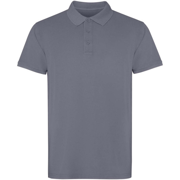 Polo unisexe à manches courtes. Finition délavée. Col et poignets côtelés 1x1, avec ouvertures latérales. Point de recouvrement ton sur ton. Patte de boutonnage avec trois boutons.
