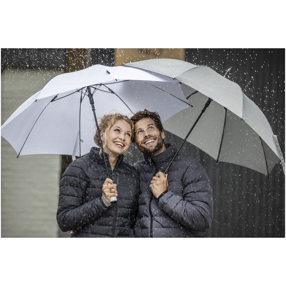 Parapluie 23” à ouverture automatique toile polyester pongee en PET recyclé. Il dispose d'une tige métallique robuste, d'un cadre en fibre de verre et d'un manche confortable en EVA avec extrémité assortie aux couleurs. Grande surface de marquage sur chacun des panneaux.