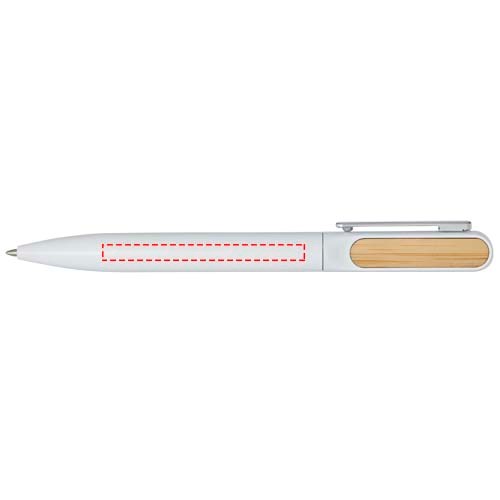 Le stylo bille Blanca est doté d'un corps supérieur en plastique recyclé recouvert d'un revêtement coloré et d'accessoires en bambou sur les deux faces. La partie inférieure du corps est en aluminium recyclé et présente un revêtement coloré. Couleur de l'encre : Bleue. Longueur d'écriture : 400 mètres. Taille de la pointe : 1 mm.