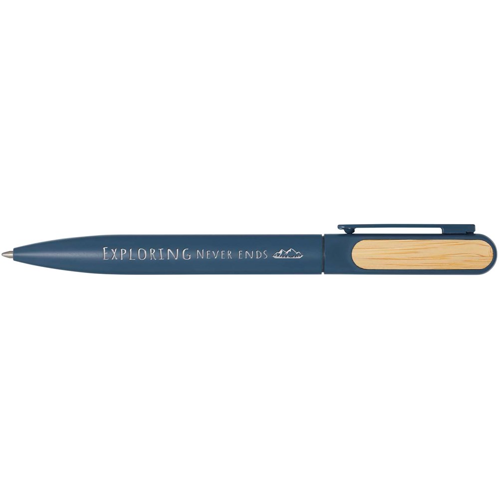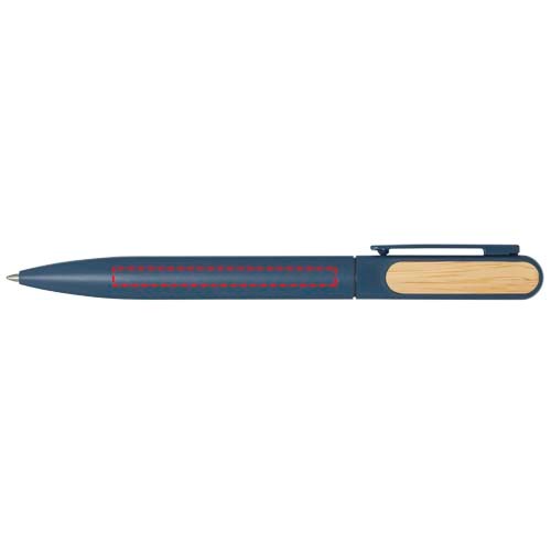 Le stylo bille Blanca est doté d'un corps supérieur en plastique recyclé recouvert d'un revêtement coloré et d'accessoires en bambou sur les deux faces. La partie inférieure du corps est en aluminium recyclé et présente un revêtement coloré. Couleur de l'encre : Bleue. Longueur d'écriture : 400 mètres. Taille de la pointe : 1 mm.