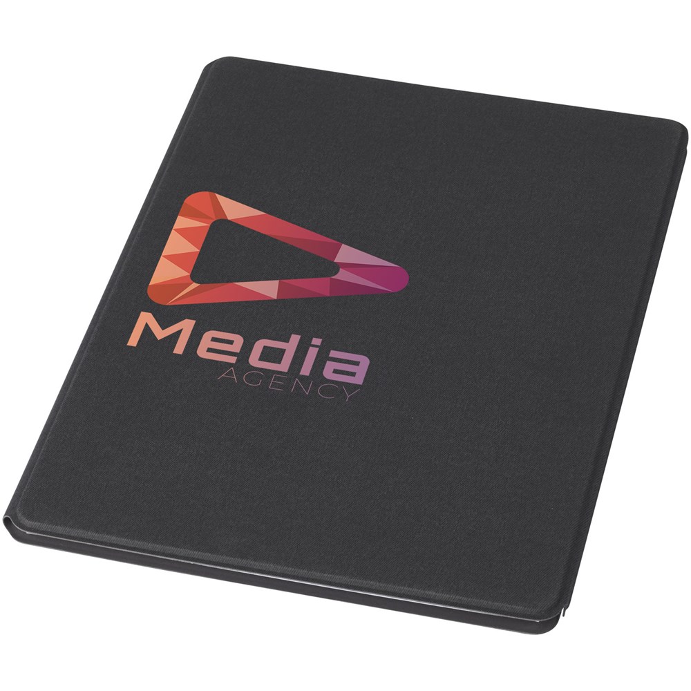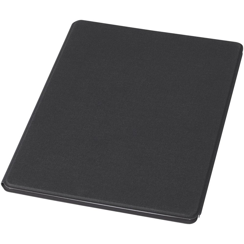 Le porte-documents Kunveno certifié RCS est partiellement fabriqué à partir de polyester post-consommation, ce qui en fait un choix plus durable puisqu'il contribue à réduire l'utilisation de matières premières vierges. Il est doté d'une fermeture aimantée et de 20 feuilles blanches lignées avec du papier recyclé de 80 g/m2 provenant de sources durables.
