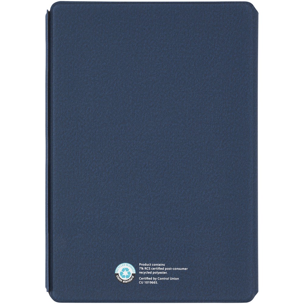 Le porte-documents Notu certifié RCS est partiellement fabriqué à partir de polyester recyclé post-consommation, ce qui en fait un choix plus durable, puisqu'il contribue à réduire l'utilisation de matières premières vierges. Il est doté d'une fermeture aimantée, d'une pochette accordéon et de 64 feuilles lignées de couleur crème avec du papier recyclé de 80 g/m2 provenant de sources durables.