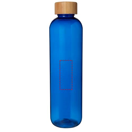 Bouteille d'eau réutilisable en plastique recyclé, avec un élégant couvercle en bambou. La bouteille à simple paroi est exempte de bisphénol A, testée et approuvée par la législation allemande sur la sécurité alimentaire (LFGB). Testée et approuvée pour la teneur en phtalates conformément à la réglementation REACH. Le bambou provient de sources durables, respectueuses de l'environnement et socialement responsables. Capacité de 950 ml. Lavage à la main recommandé. Livrée dans un coffret cadeau en carton recyclé.