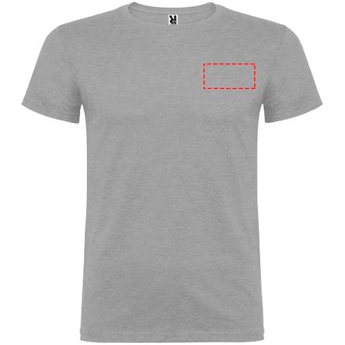 T-shirt à manches courtes avec col rond double épaisseur en élasthanne en tissu avec coutures latérales. Coutures recouvertes renforcées au col. Étiquette détachable. Le mannequin mesure 120 cm et porte la taille 5/6.