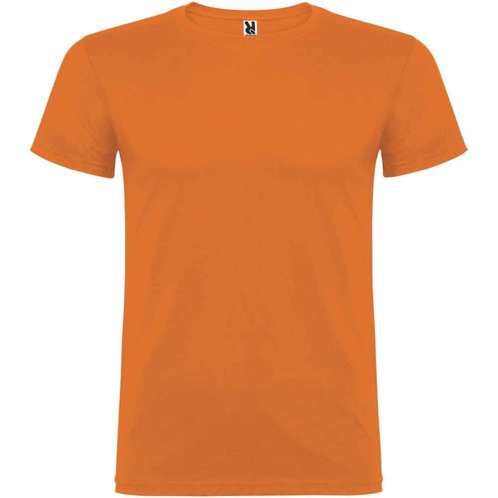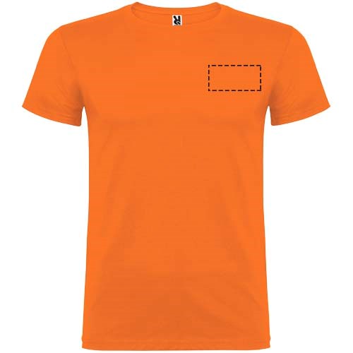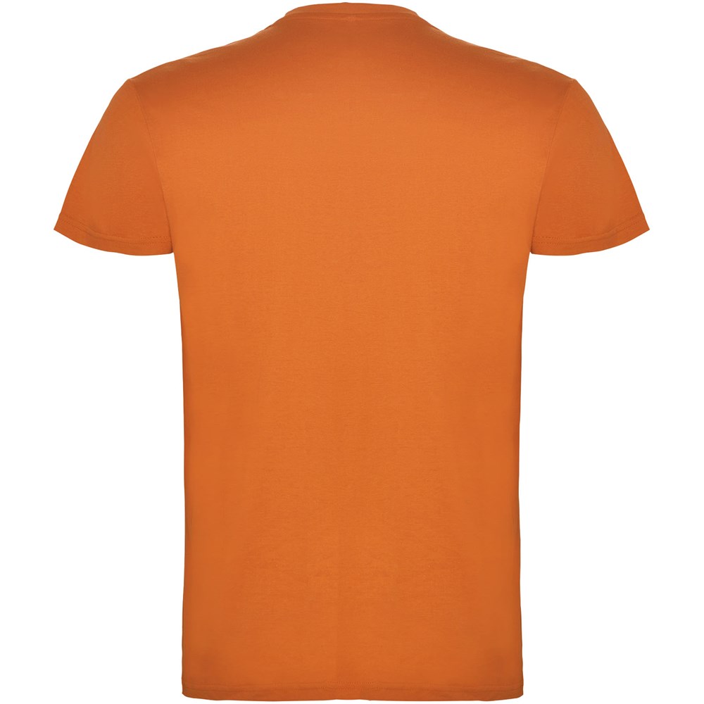 T-shirt à manches courtes avec col rond double épaisseur en élasthanne en tissu avec coutures latérales. Coutures recouvertes renforcées au col. Étiquette détachable. Le mannequin mesure 120 cm et porte la taille 5/6.
