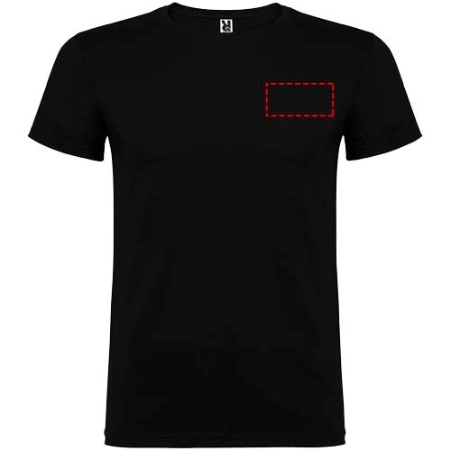 T-shirt à manches courtes avec col rond double épaisseur en élasthanne en tissu avec coutures latérales. Coutures recouvertes renforcées au col. Étiquette détachable. Le mannequin mesure 120 cm et porte la taille 5/6.