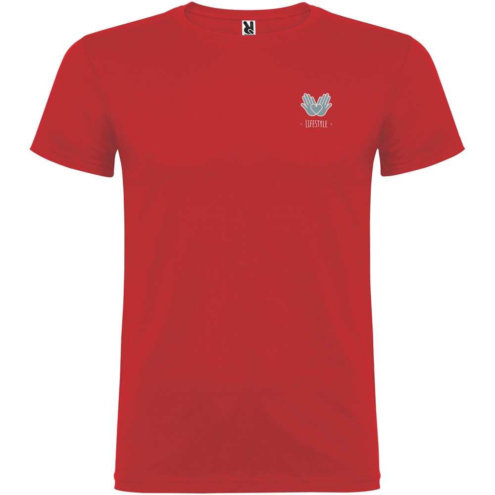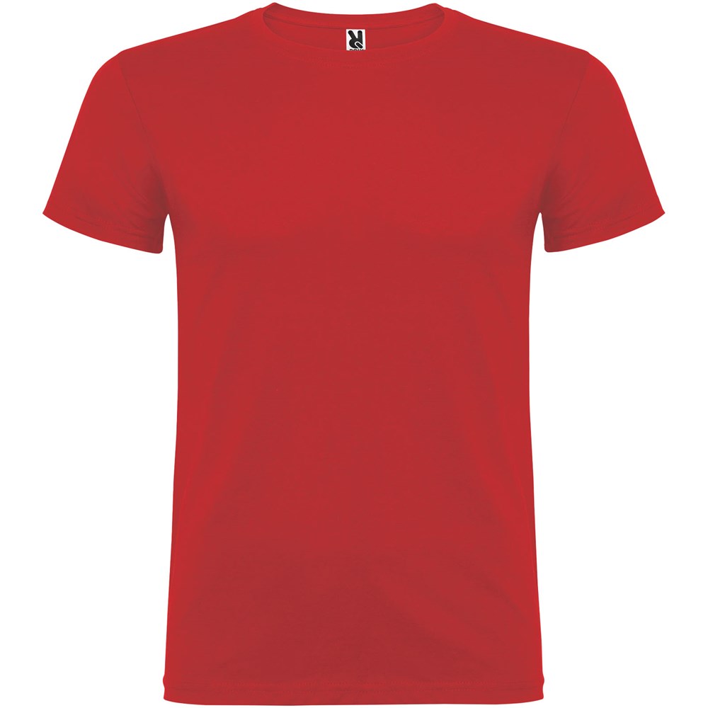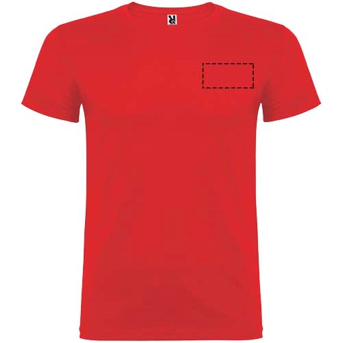 T-shirt à manches courtes avec col rond double épaisseur en élasthanne en tissu avec coutures latérales. Coutures recouvertes renforcées au col. Étiquette détachable. Le mannequin mesure 120 cm et porte la taille 5/6.