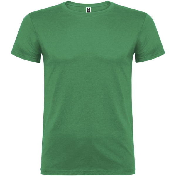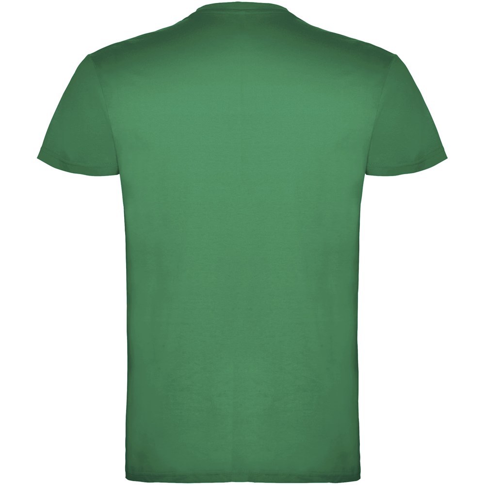 T-shirt à manches courtes avec col rond double épaisseur en élasthanne en tissu avec coutures latérales. Coutures recouvertes renforcées au col. Étiquette détachable. Le mannequin mesure 120 cm et porte la taille 5/6.