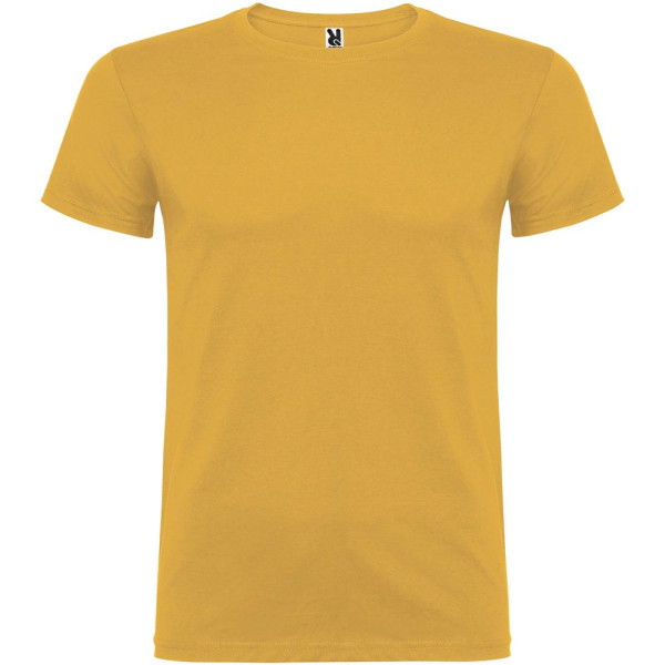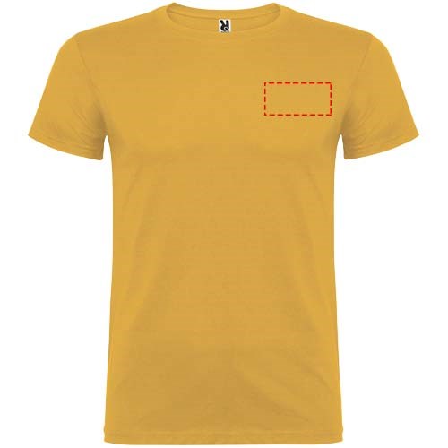 T-shirt à manches courtes avec col rond double épaisseur en élasthanne en tissu avec coutures latérales. Coutures recouvertes renforcées au col. Étiquette détachable. Le mannequin mesure 120 cm et porte la taille 5/6.