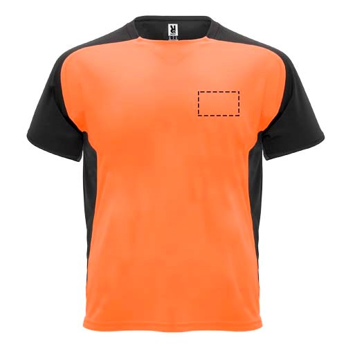 Tissu technique et respirant. Col ras-du-cou avec surpiqûres assorties. Manches raglan et panneaux latéraux contrastés. Étiquette détachable.