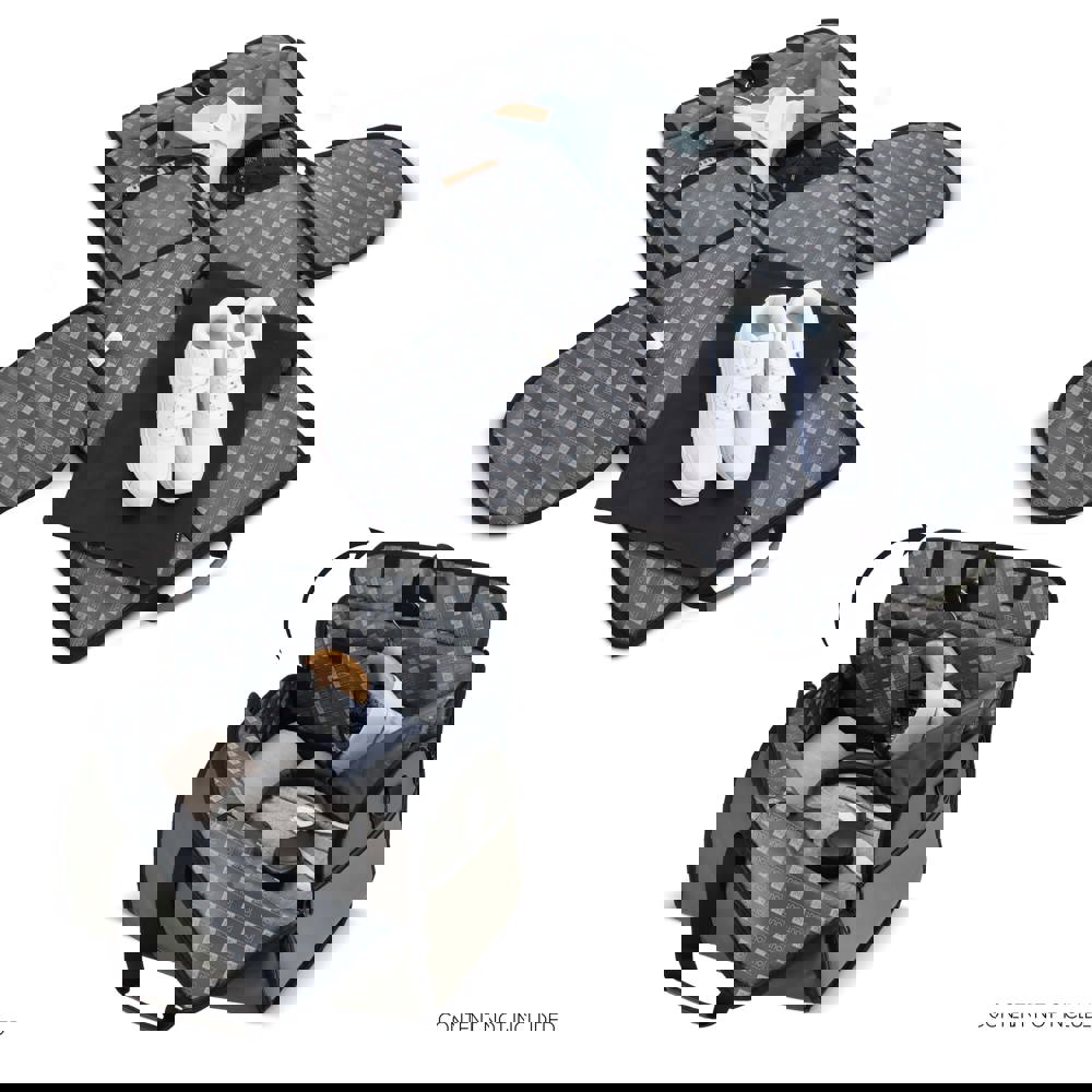Le sac InSideOut Carry Smart est un sac de voyage élégant et fonctionnel, doté d'une housse à vêtements intégrée, d'un espace de rangement spacieux, d'une bandoulière et d'une pochette à chaussures. Il est idéal pour les voyages d'affaires ou d'agrément.