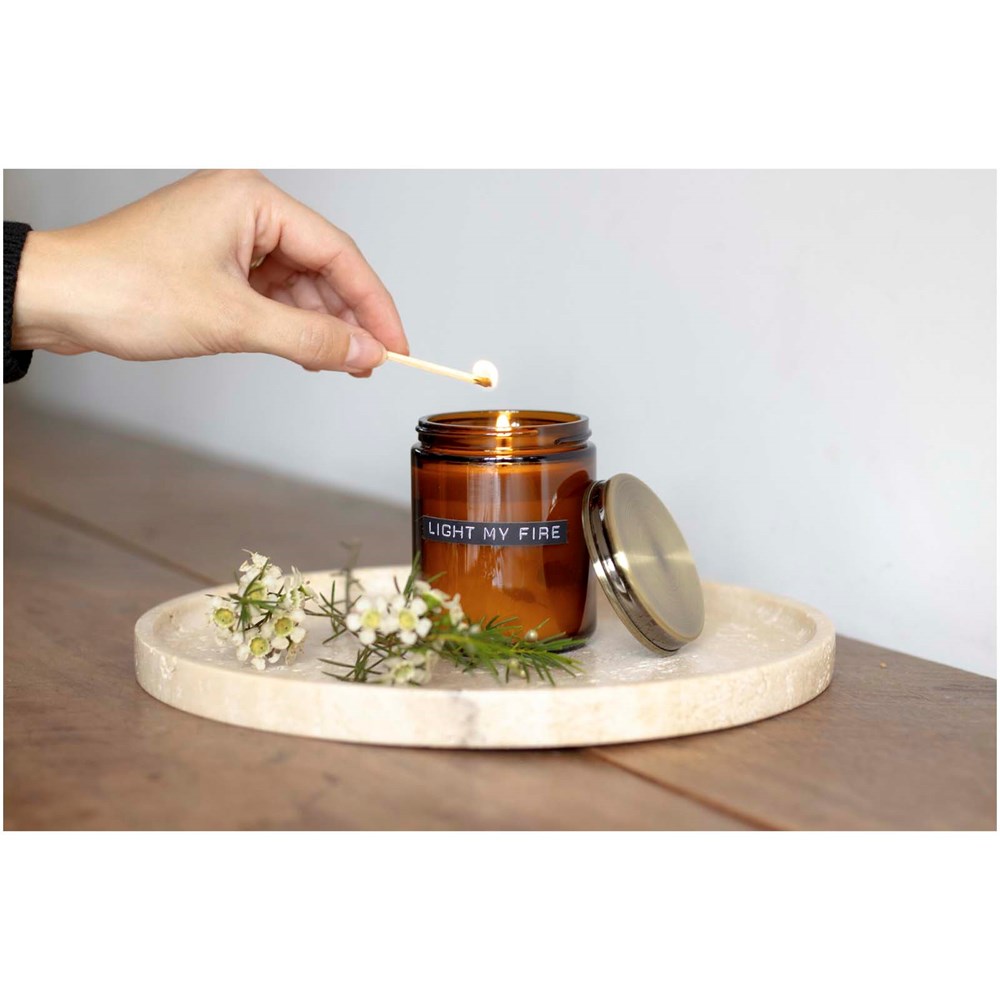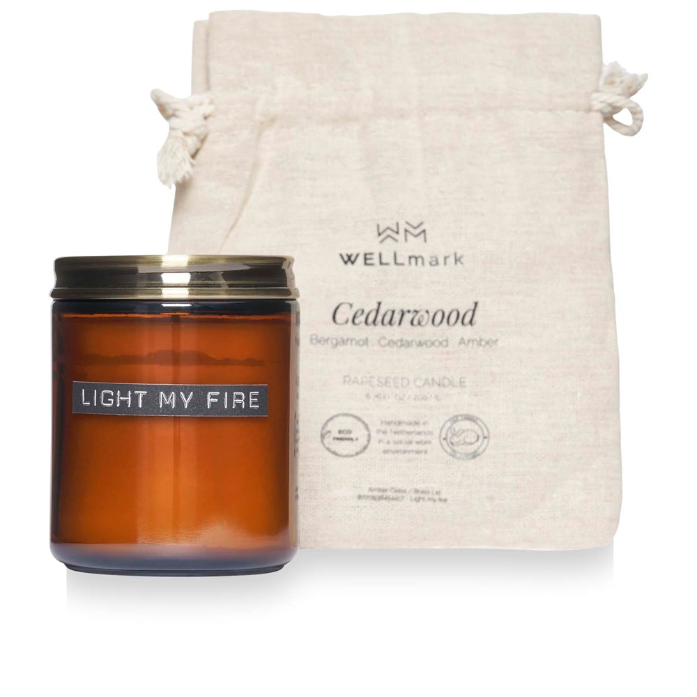 Bougie parfumée au bois de cèdre de taille moyenne présentée dans un verre brun avec couvercle en laiton. La bougie parfumée brûle jusqu'à 35 heures et peut être réutilisée pour ranger des disques de coton ou pour rempoter une jolie petite plante. Le produit est fabriqué à la main aux Pays-Bas à partir de 100 % de cire de colza. Livré dans une pochette en coton. Le texte sur le contenant en verre peut varier.