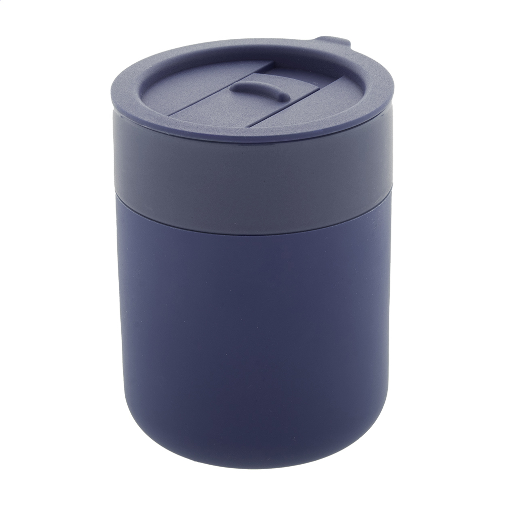 Mug de voyage en céramique recouvert de silicone avec couvercle en plastique PP. 300 ml.plus