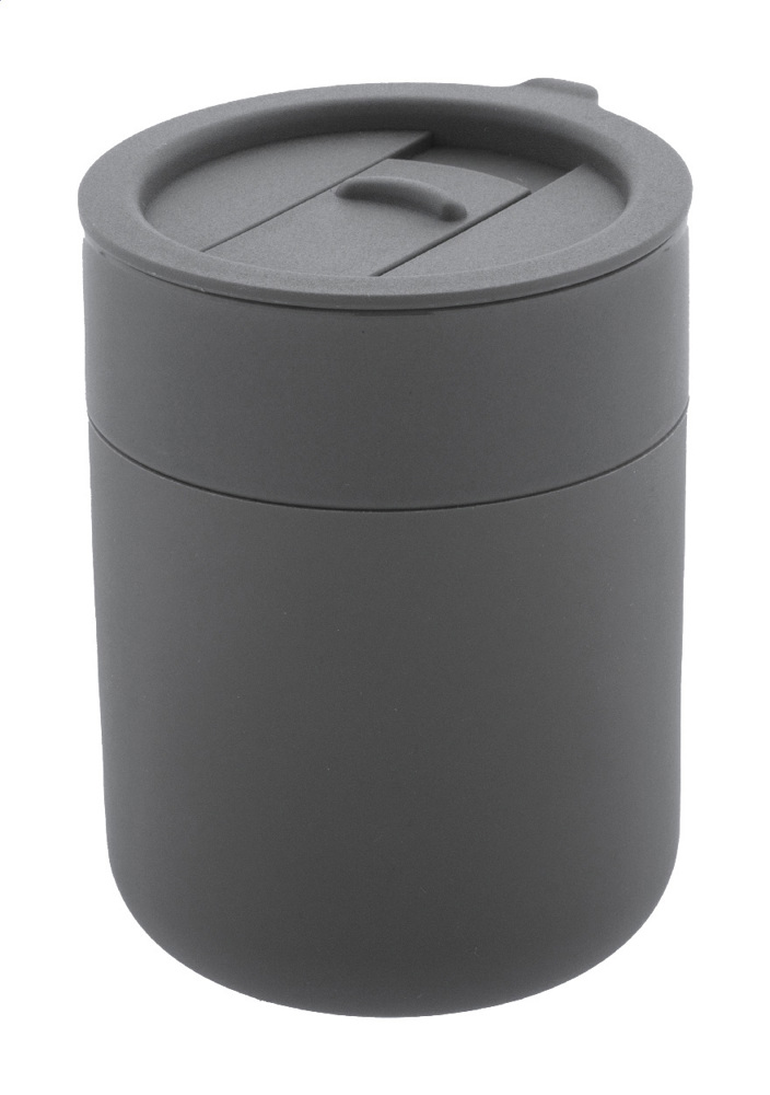 Mug de voyage en céramique recouvert de silicone avec couvercle en plastique PP. 300 ml.plus