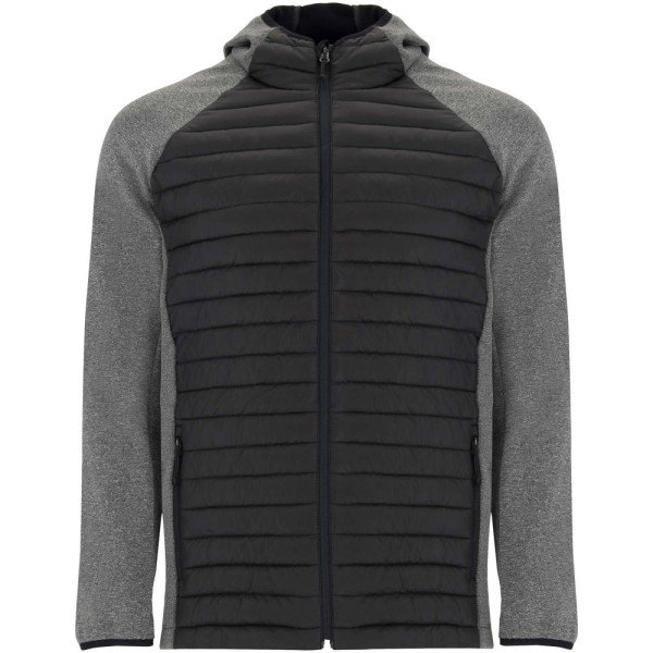 Veste unisexe en combinaison bi-matière : Capuche fixe ajustée. Manches raglan. Manches, panneaux latéraux et capuche en tissu Softshell. Tissu matelassé toucher plume devant et dos. Fermeture zippée inversée avec protège-menton et tirette assortis. Deux poches avant avec fermetures zippée. Bordure élastique assortie au col, aux poignets et à l'ourlet. Étiquette détachable. Modèle coupe-vent. Le mannequin Homme mesure 184 cm et porte la taille L, le mannequin Femme mesure 179 cm et porte la taille S.
