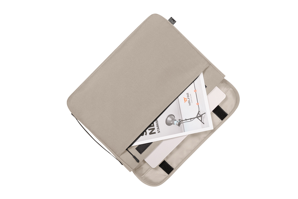 elegante laptophouder van gerecycled materiaal; gewatteerd hoofdvak; gewatteerde klep met...plus