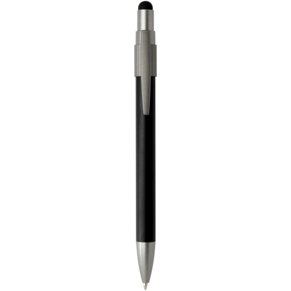 Stylo bille avec stylet et hand spinner, alliant praticité et design ludique. Le stylo est fabriqué à partir d’aluminium recyclé certifié RCS et dispose d’un mécanisme à poussoir souple et d’une pointe de stylet pour une utilisation sur écran tactile. Un hand spinner intégré sur le dessus ajoute une touche anti-stress (il suffit d’une pichenette pour le faire tourner). Couleur de l’encre : bleue. Longueur d'écriture : 1000 mètres.