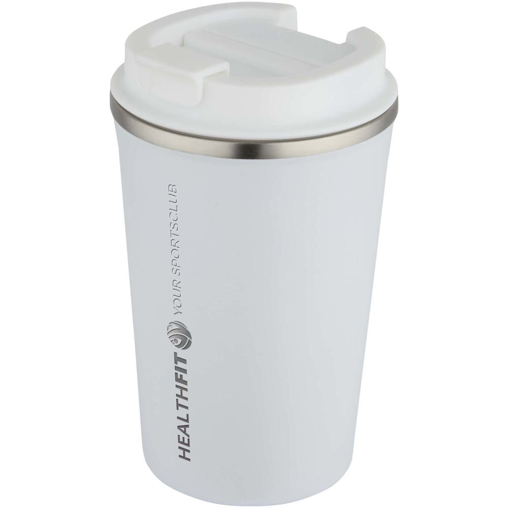 Conçu pour les boissons à emporter, ce gobelet à café en acier inoxydable à double paroi et à isolation sous vide conserve les boissons à la bonne température plus longtemps. Le couvercle rotatif permet une ouverture et une fermeture en douceur tout en facilitant la dégustation de la boisson. Le revêtement mat ajoute une finition élégante. Étanche. Capacité : 350 ml.