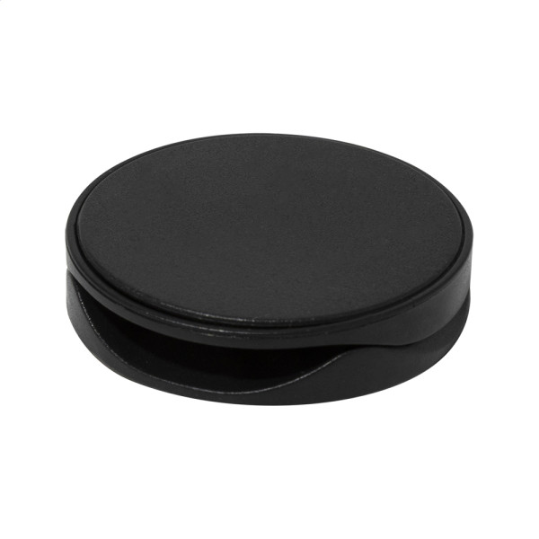 Support rond pour téléphone portable en ABS recyclé avec base autocollante.