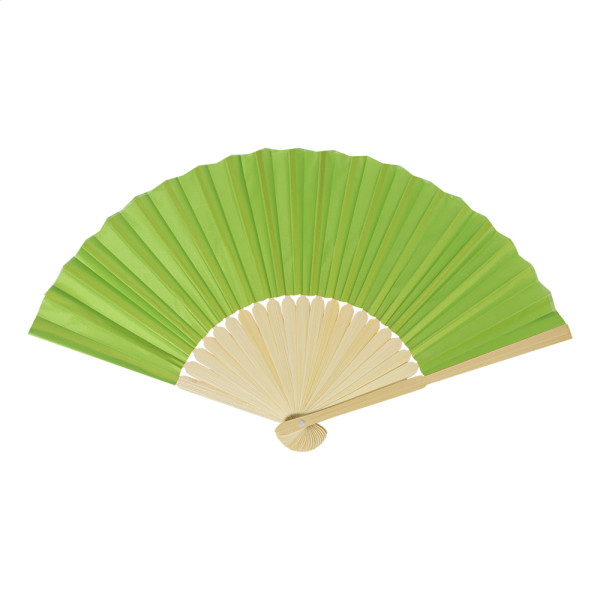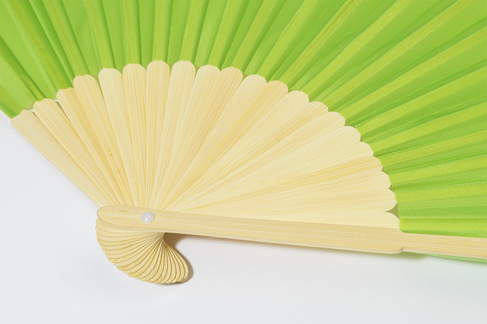 Éventail en polyester RPET avec baleines en bambou.