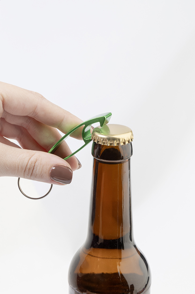 Décapsuleur en aluminium recyclé avec anneau porte-clés en métal.plus