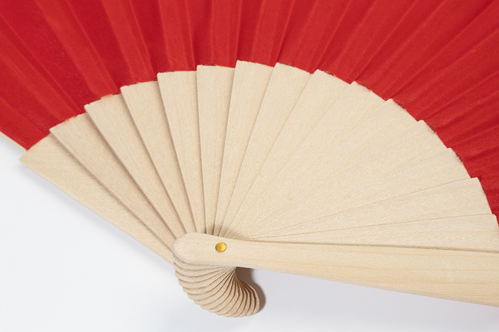 Éventail en polyester RPET avec baleines en bois.