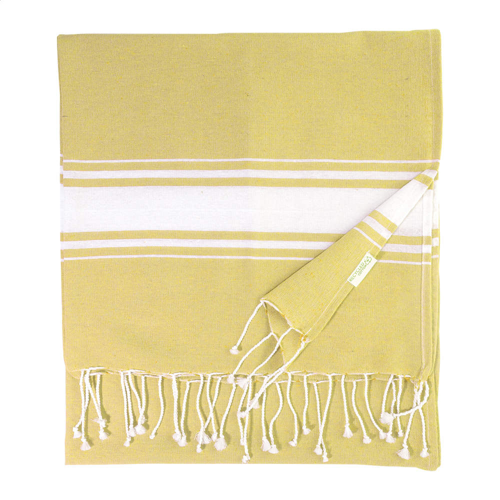 Serviette de plage paréo bicolore en 70 % coton recyclé et 30 % polyester RPET, 180 g/m².plus