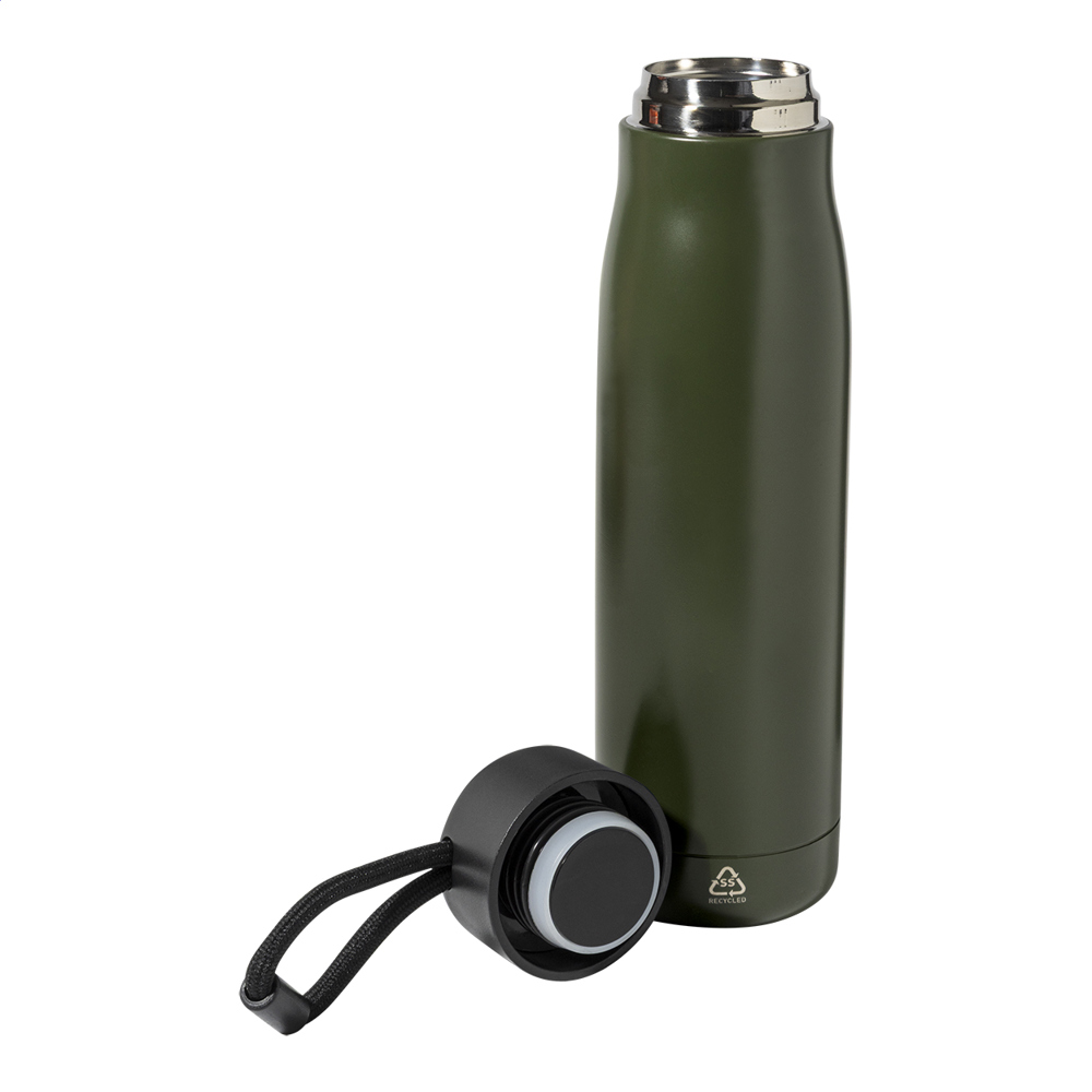Bouteille isotherme à double paroi en acier inoxydable recyclé, avec couvercle en PP et dragonne...plus