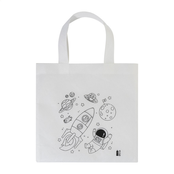 Mini sac de courses en RPET non tissé à colorier avec 5 crayons.