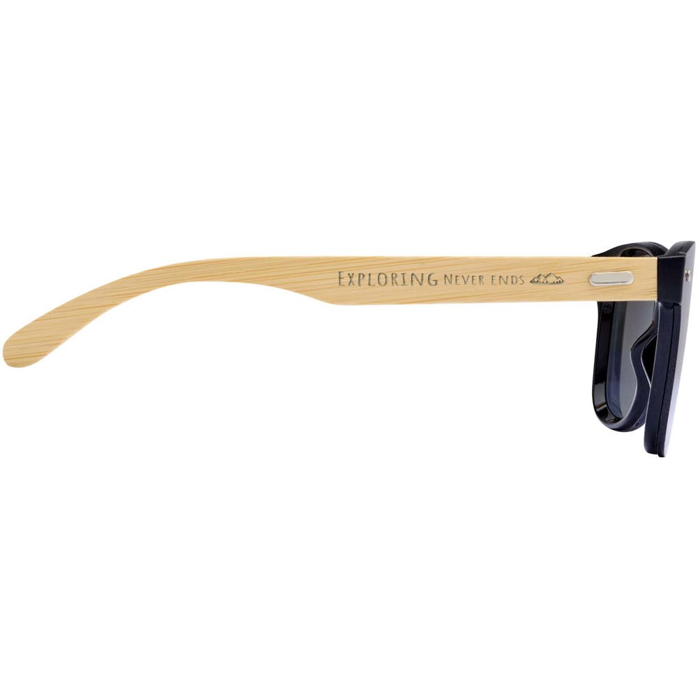 Lunettes de soleil élégantes avec verres colorés et branches en bambou. Les verres UV 400 protègent des rayons ultraviolets nocifs. Conforme à la norme de sécurité européenne EN12312-1.