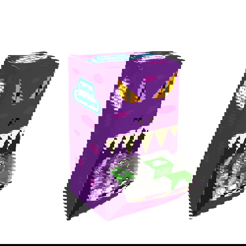 Display box voorzien van een all-over full colour bedrukking en gevuld met 60 blokjes met pepermunt (artikel 1206)