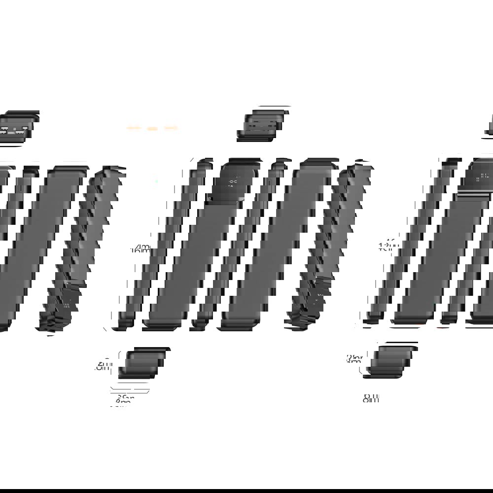 La batterie externe Nolu 20 000 mAh, 22,5 W avec Power Delivery, charge rapidement et efficacement. Ses 3 ports (2× USB-A, 1× USB-C) permettent de connecter plusieurs appareils simultanément. Compacte, idéale en voyage, avec écran LED indiquant l'énergie restante. Câble USB-C inclus.