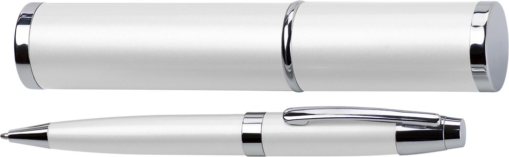 Stylo bille en métal dans un tube en aluminium assorti à la couleur, mine noire.