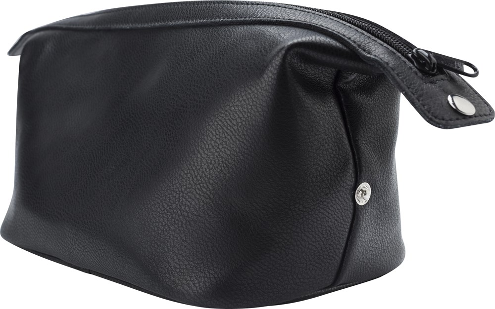 Trousse de toilette zippée en cuir.